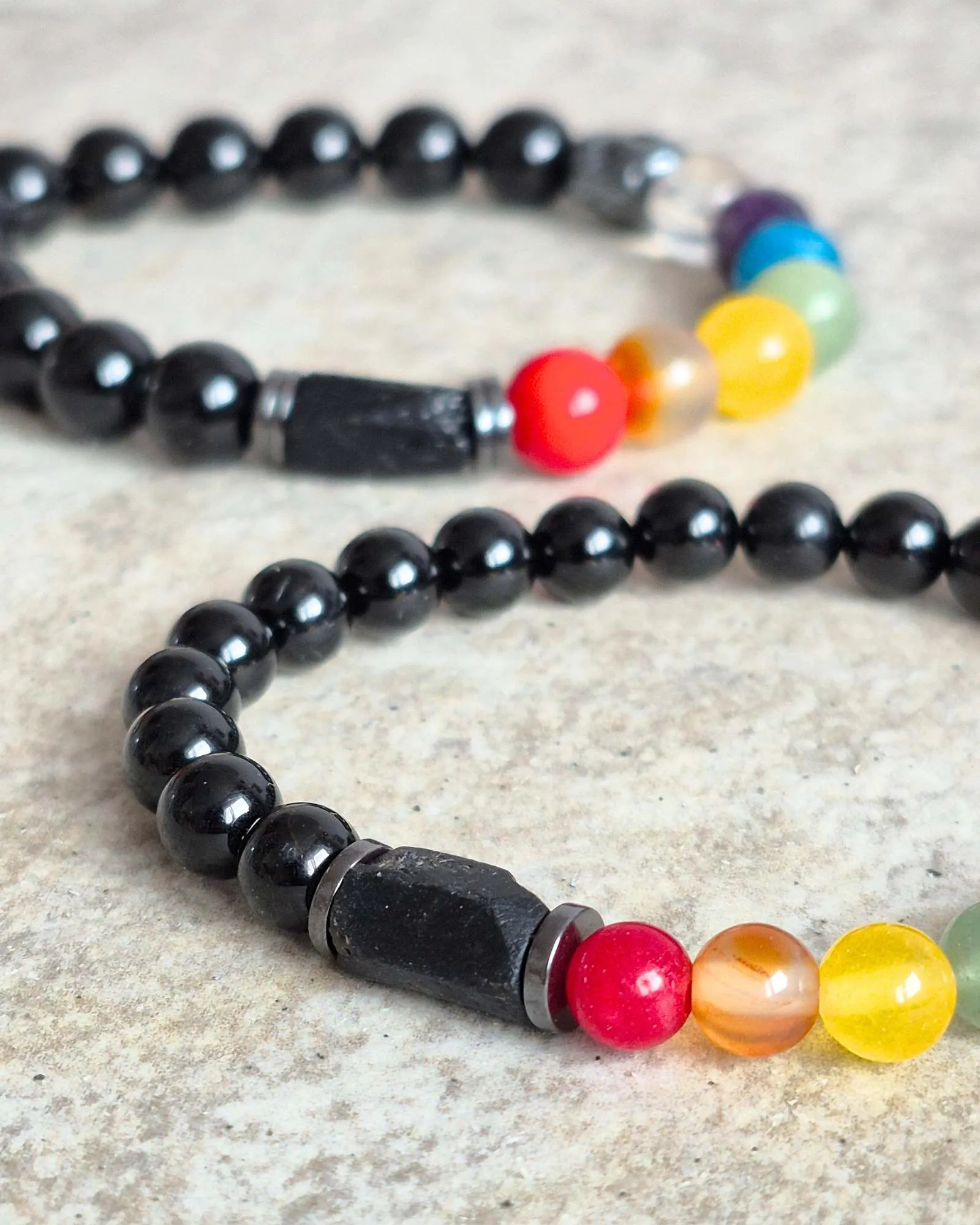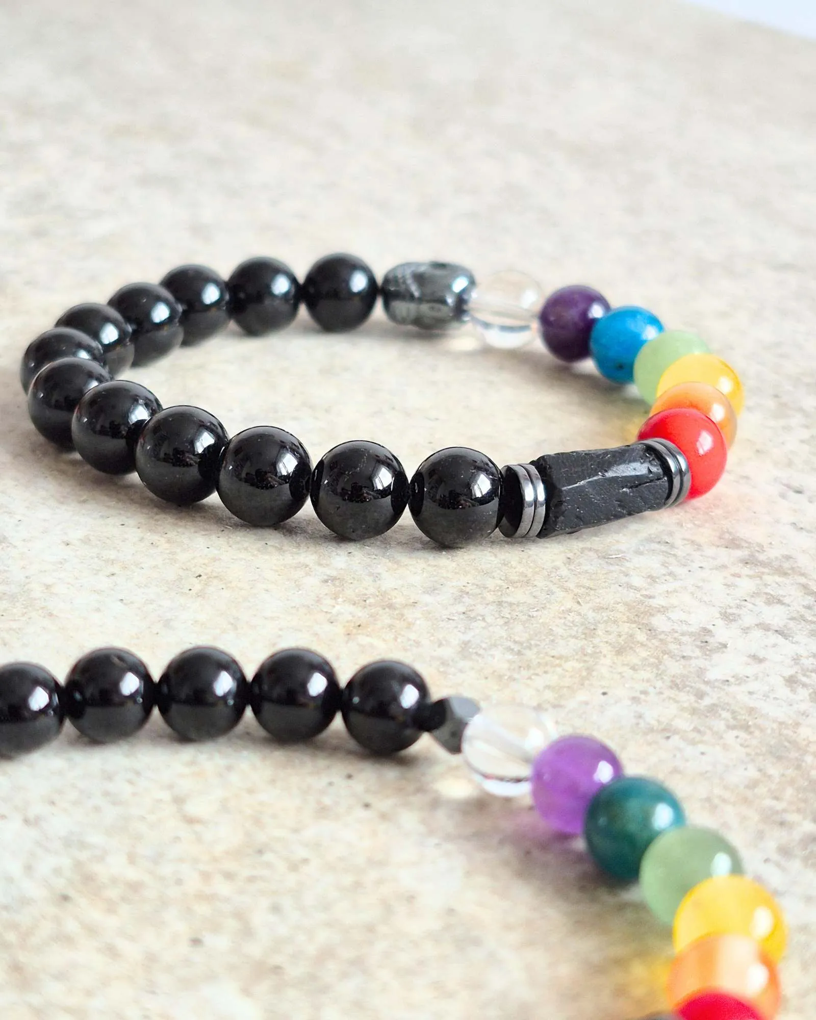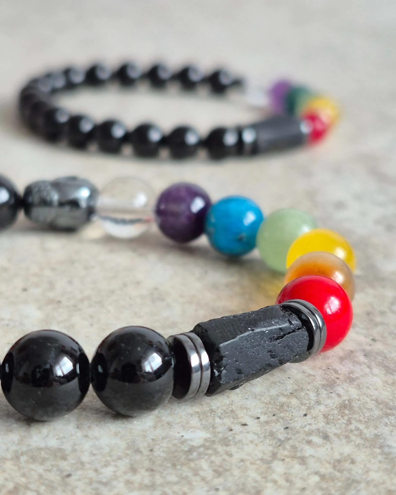 Chcemy Ci przedstawić naszą wyjątkową bransoletkę czakry, która jest nie tylko piękna, ale także pełna mocy. To nasza jedyna bransoletka czakry, która w tak dużym stopniu wykorzystuje czarny turmalin – kamień, który ma w sobie niezwykłą siłę. W rzeczywistości, wszystkie kolorowe kamienie w tej bransoletce otoczone są turmalinem, co czyni ją naprawdę wyjątkową.