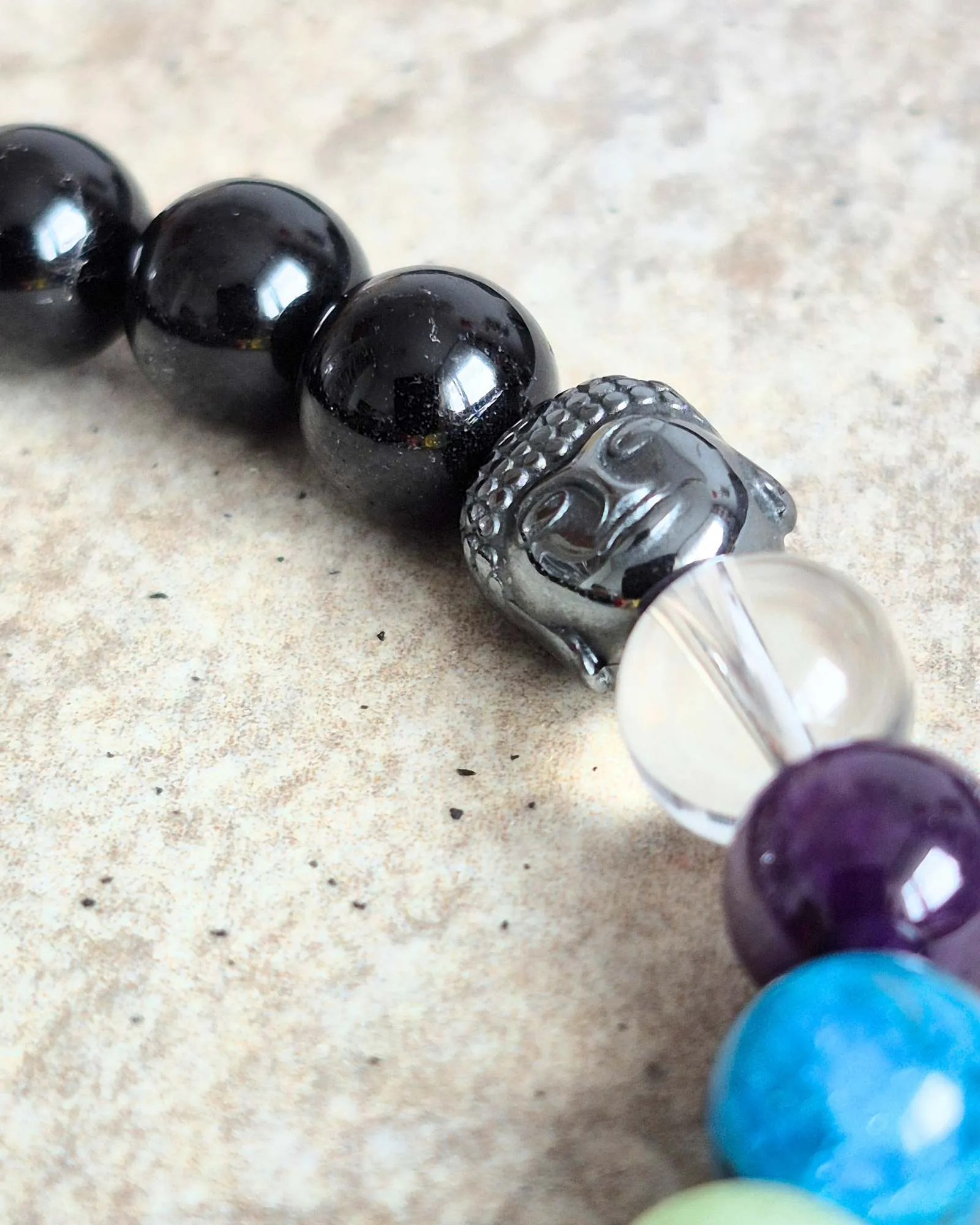 W przypadku wyboru bransoletki o wielkości kamieni 8mm – elementem pośrdenim między kamieniami czakr a dopełniającymi jest Budda z Hematytu. Jeśli wolisz zamówić bransoletkę bez wizerunku Buddy – napisz nam o tym w uwagach.