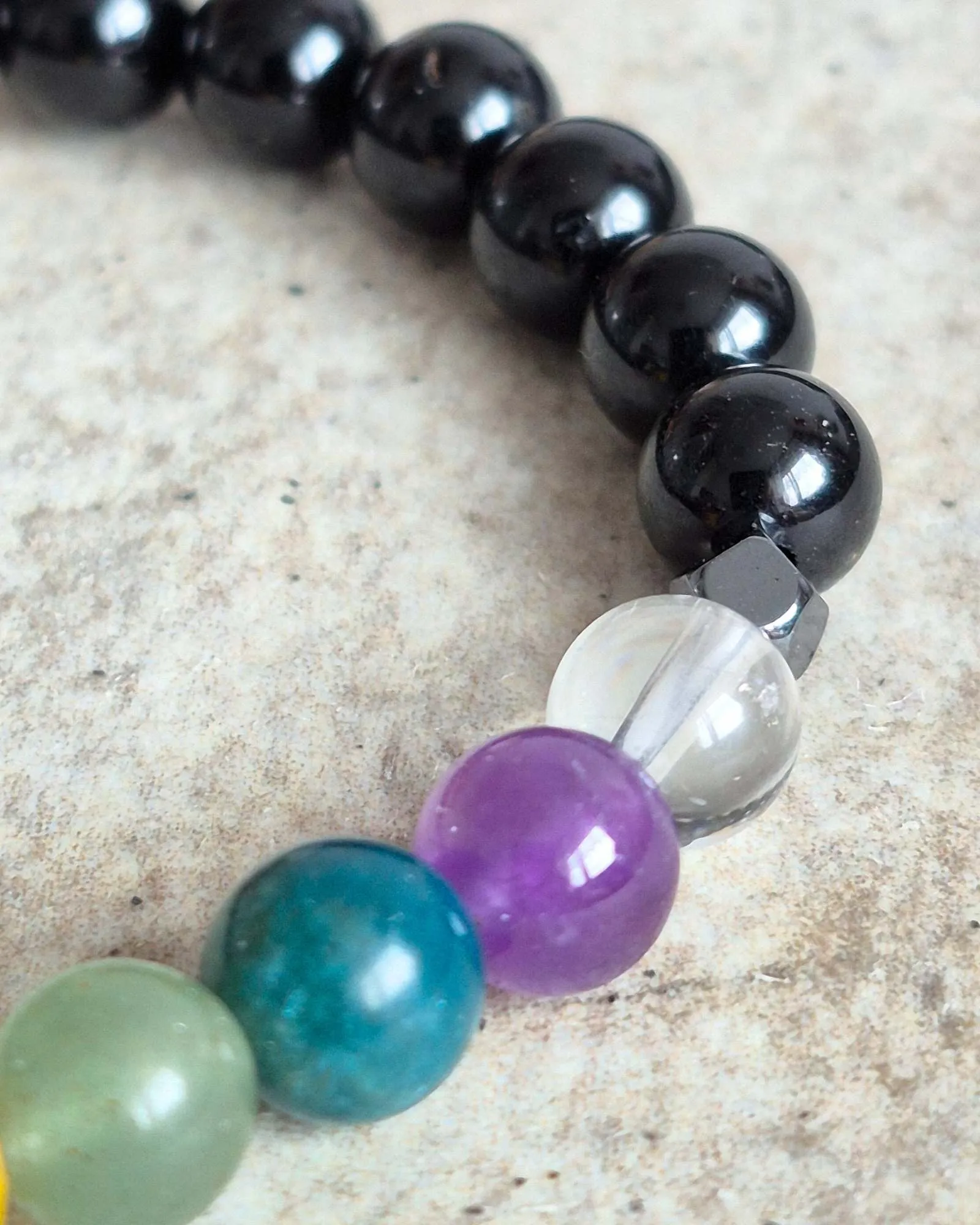 Nasza bransoletka czakry to nie tylko biżuteria – to narzędzie do pracy z energią. Każdy z kolorowych kamieni, takich jak jadeit, agat awenturyn, apatyt, ametyst i kryształ górski, ma swoje unikalne właściwości, które wspierają różne czakry. Razem tworzą harmonijną całość, która pomoże Ci w codziennym życiu, a czarny turmalin dodaje jej wyjątkowej mocy.