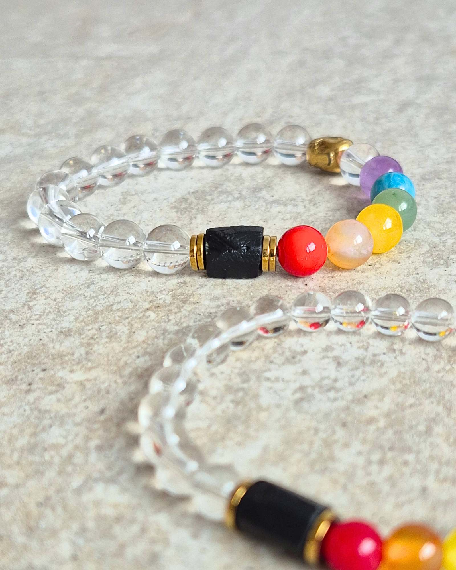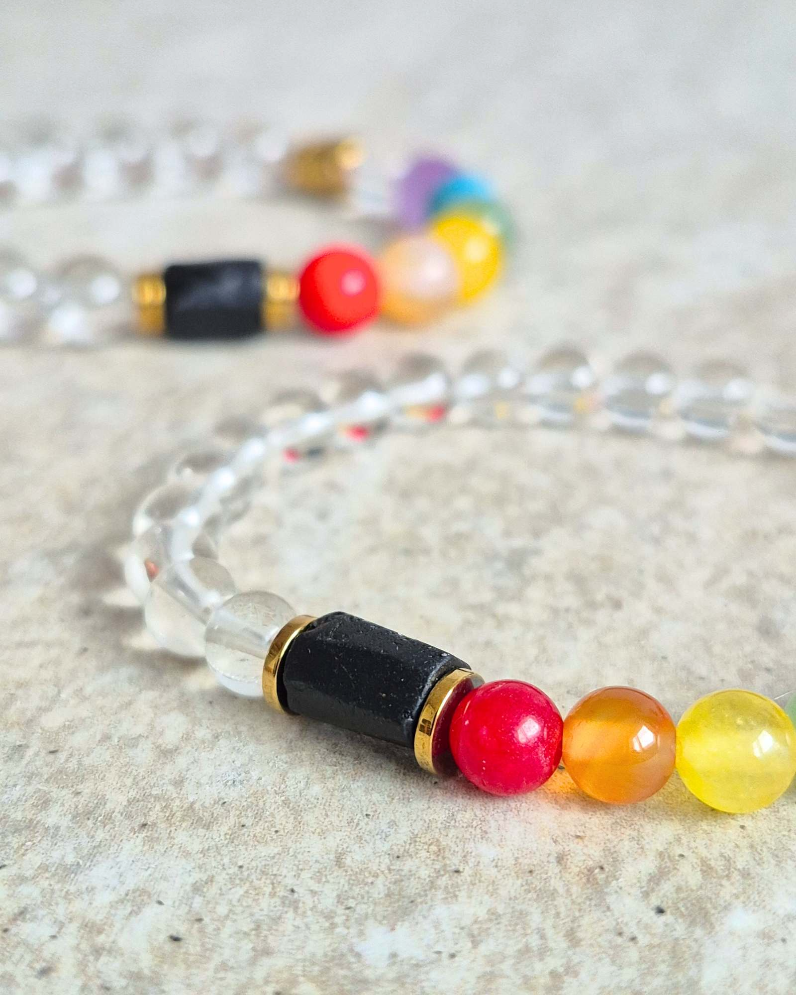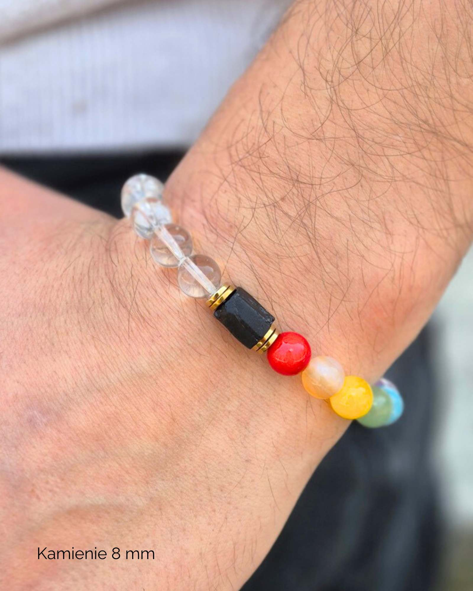 Przedstawiamy naszą unikalną bransoletkę czakry, która łączy w sobie moc kryształu górskiego i czarnego turmalinu. Każdy kolorowy kamień w tej bransoletce symbolizuje jedną z siedmiu czakr, tworząc harmonijną całość, która wspiera Twoje samopoczucie i energię.
