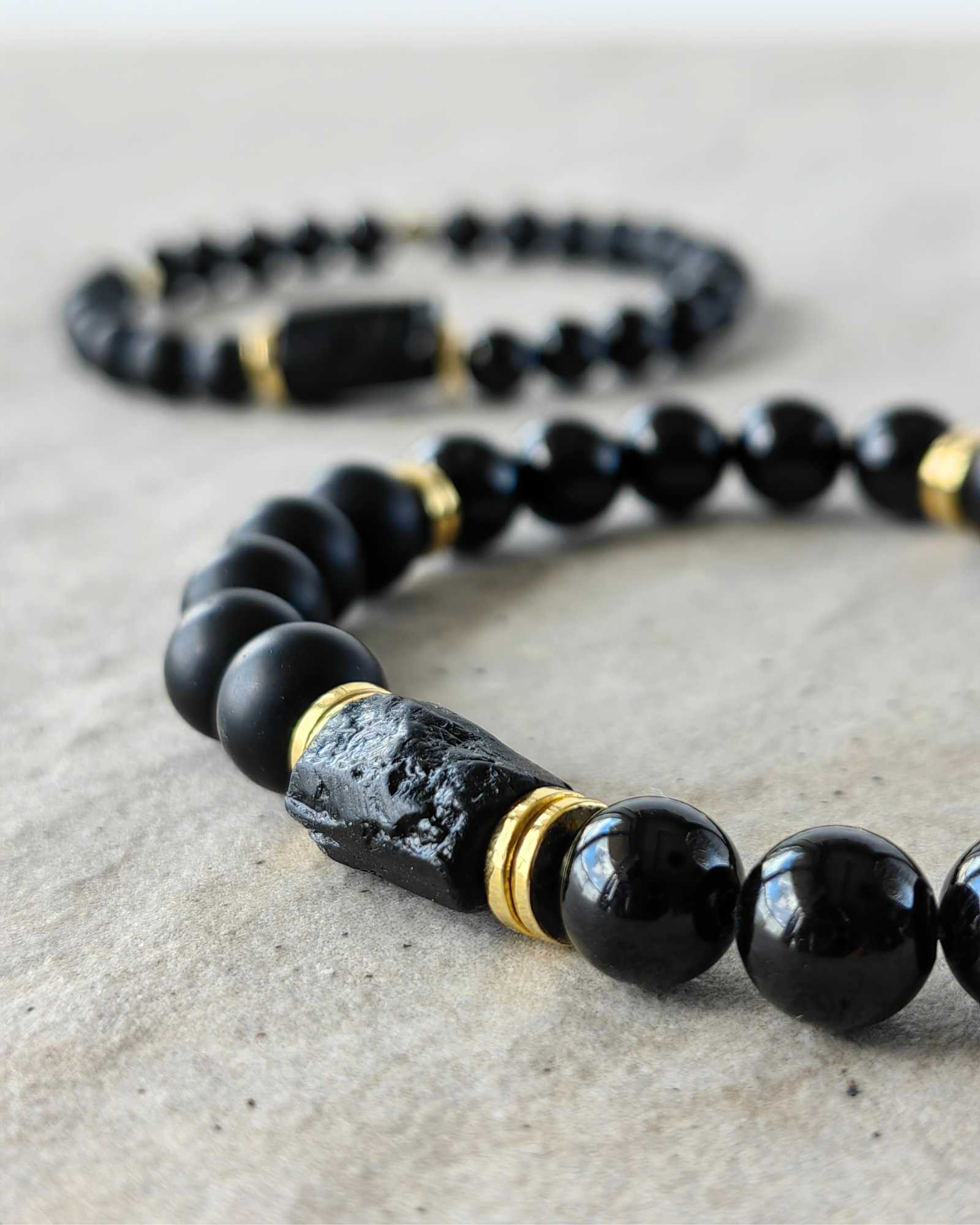 Bransoletka Turmalin – Onyks to również Bransoletka Wdzięczności która powstała by każdego dnia przypominać Ci o tym za co możesz być wdzięczny. Posiada pięć kamieni kontrastowych na rano, oraz pięć kamieni kontrastowych na wieczór (w tym przypadku Turmalin), by przypomnieć o porannej i wieczornej praktyce wdzięczności. Pamiętaj, to na czym skupiasz uwagę- rośnie, dlatego wrato być wdzięcznym!
