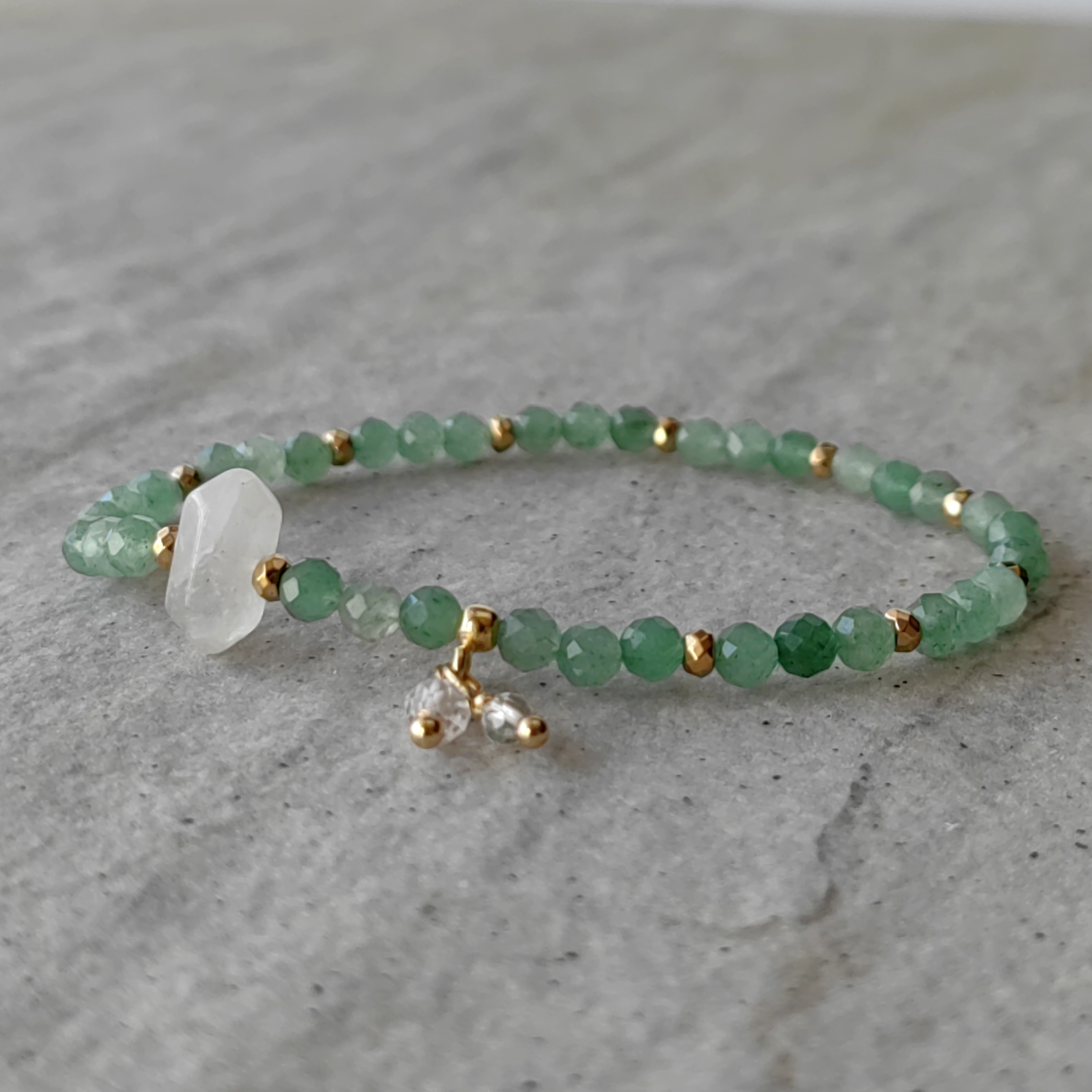 Awenturyn: Kluczowy element tej wyjątkowej bransoletki. Jego wibracje oddziałują bezpośrednio na emocjonalną sferę Raka, dając mu poczucie uznania za wkład i trud włożony w każdy dzień. Ta mistyczna energia pomaga Rakowi zrozumieć i docenić własne osiągnięcia. Awenturyn, z jego charakterystyczną, głęboką zielenią, jest symbolem równowagi, spokoju i stabilności. Działa na Raków jak balsam, łagodzi ich emocjonalne rany i otwiera na nowe doświadczenia, eliminując jednocześnie obawy i lęki.