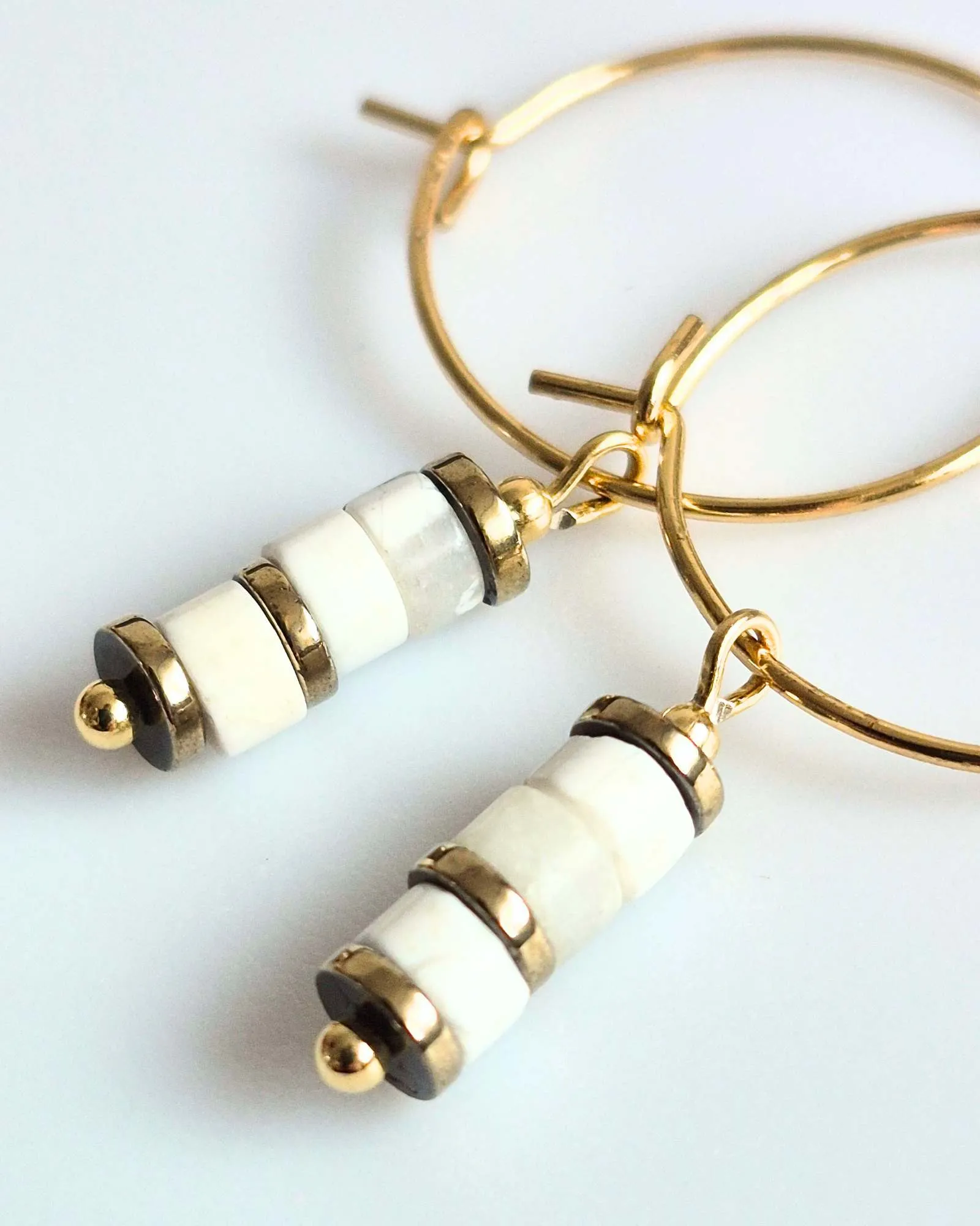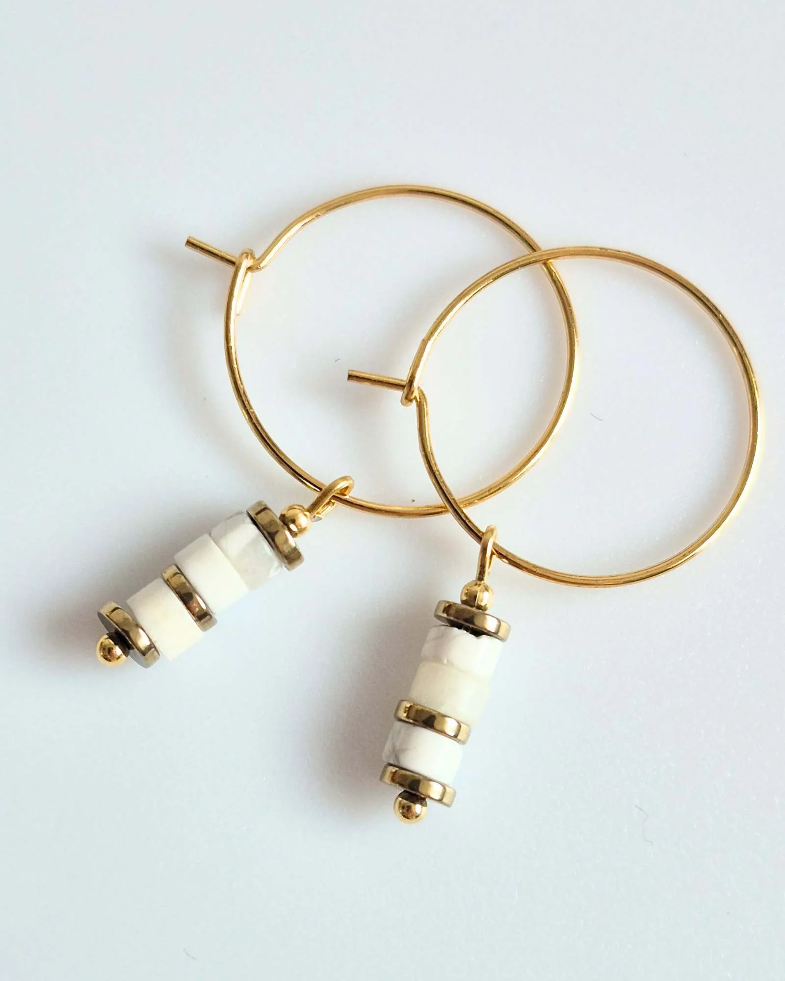 Naturalne Elementy: Nasze kolczyki łączą howlitu z subtelnymi złotymi akcentami, które dodają wyjątkowego wdzięku.