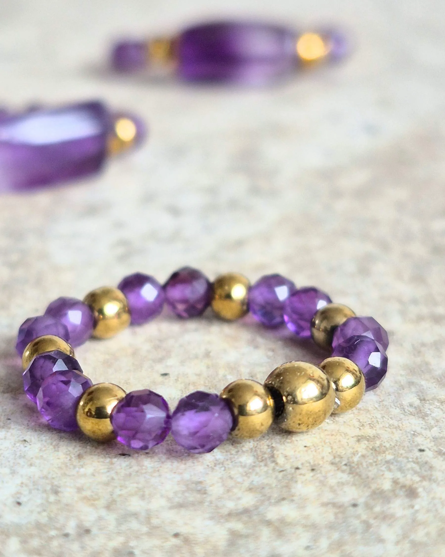 💜 Pierścionek na gumce z ametystem i hematytem – harmonia energii i elegancji